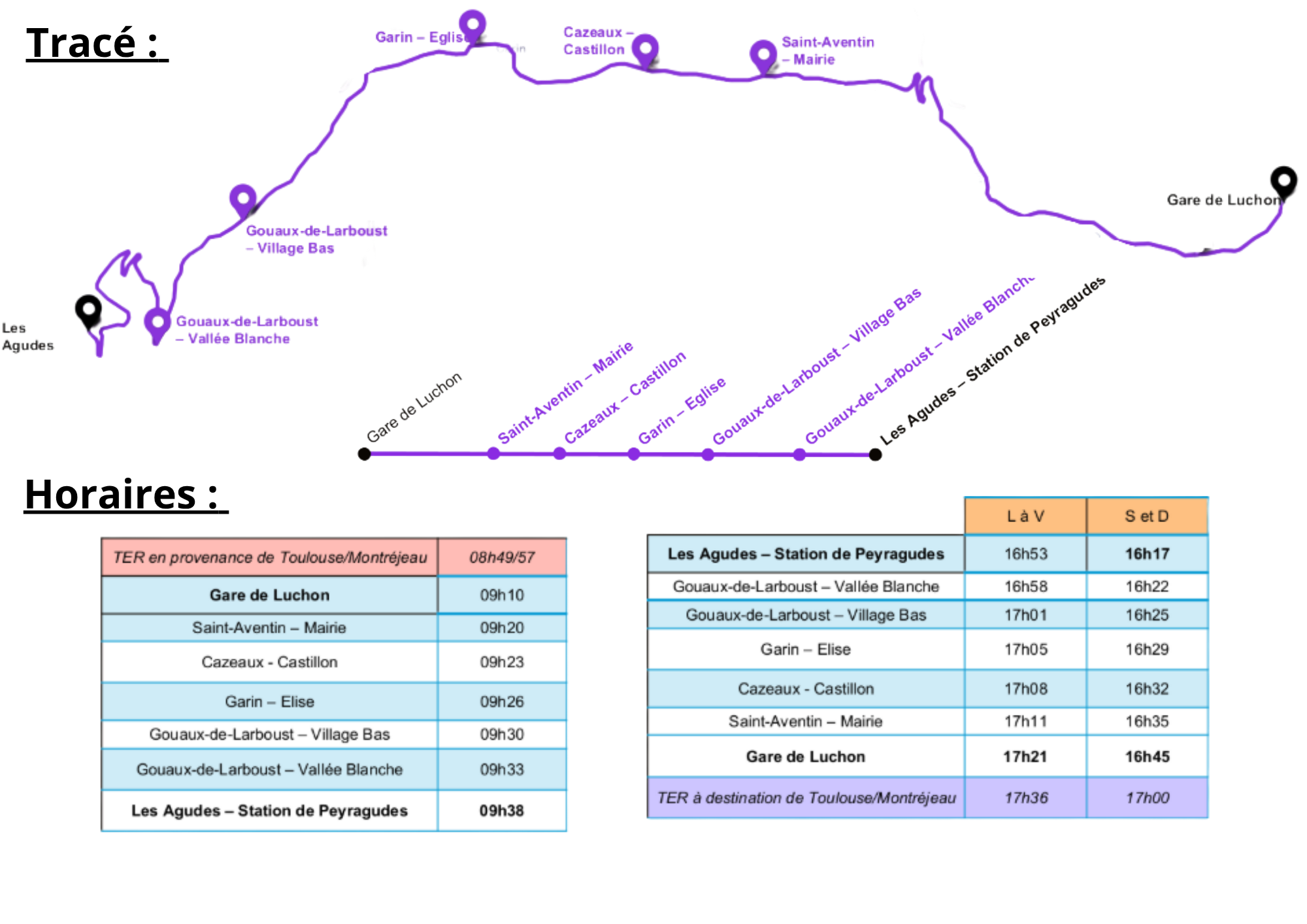 Tous les weeks-ends et durant tous les jours des vacances scolaires (toutes zones confondues) du 13/12/2025 au 29/03/2026, profitez d'une navette gratuite entre la Gare de Luchon et la Station de Peyragudes - Les Agudes (sous réserve de disponibilité).